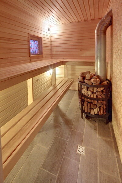 Баня оборудована парилкой с каменной печью, санузлом, душевой и полноценной комнатой отдыха на втором этаже.