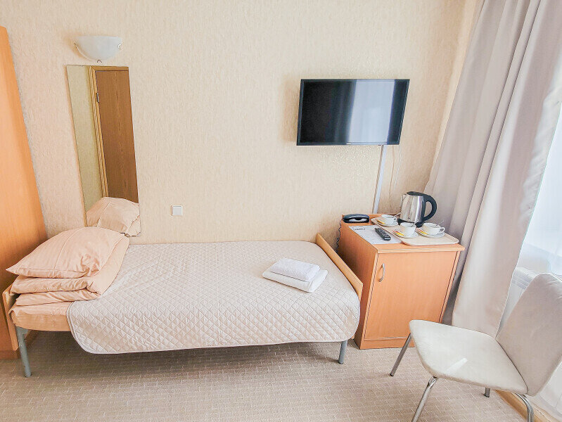 18 кв.м, две односпальные кровати, доп. место - раскладушка, ТВ, с/у душ