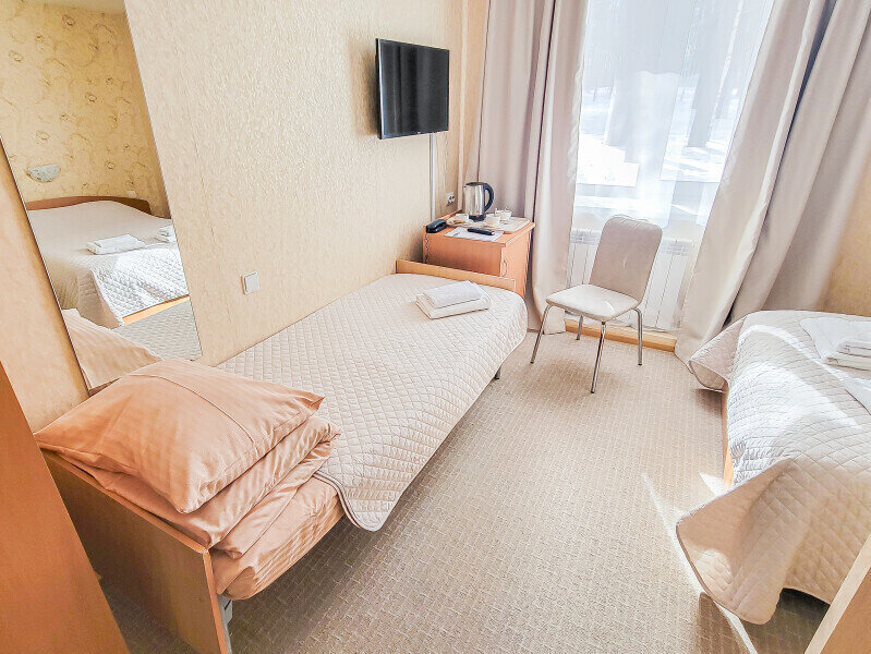 Стандарт с 2 односпальными кроватями — однокомнатный номер для двухместного размещения. Санузел оснащён душевой кабиной. Эти номера являются практичным выбором как для деловой поездки, так и для отпуска.