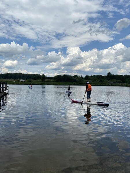 На территории пляжа есть детская площадка, зона с качелями, волейбольная площадка, станция проката сапбордов, летний бар. Рядом с пляжем расположены мангальные зоны и открытая беседка для компании до 20 человек.