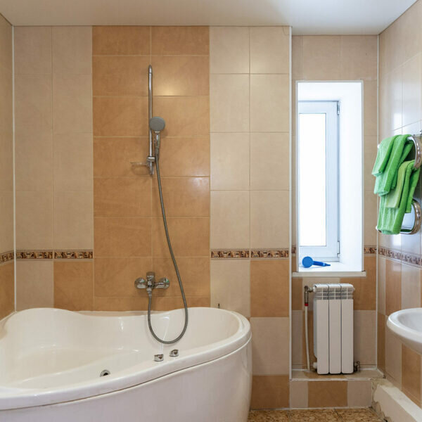 Люкс — двухкомнатный номер с уютной спальней и просторной гостиной. Санузел оснащен джакузи.