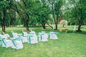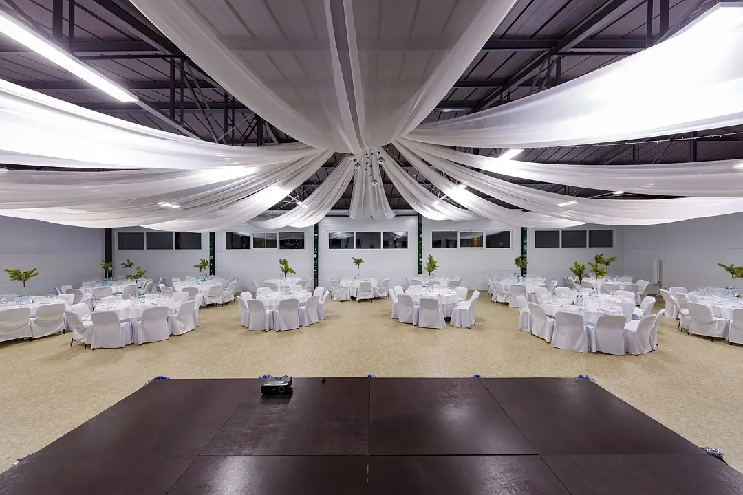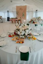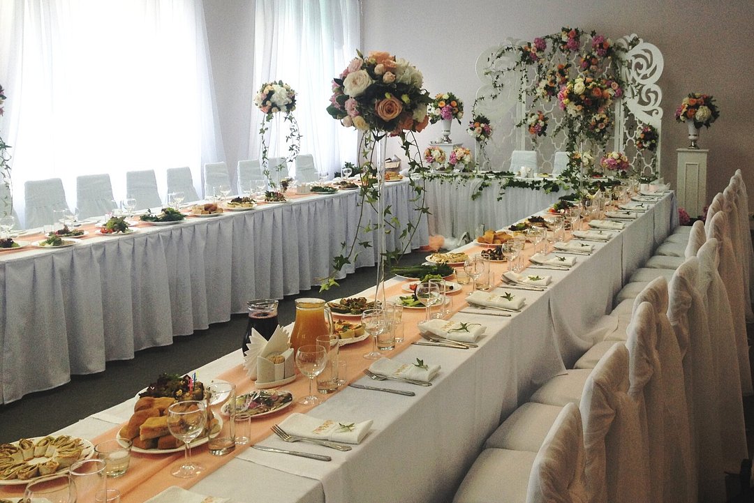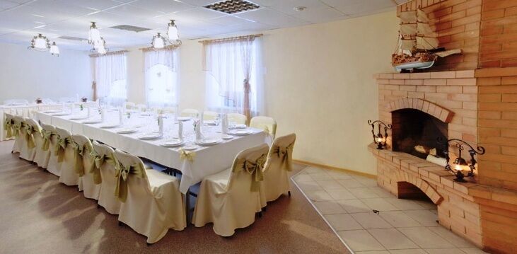 Банкетный зал в загородном комплексе «Солнечный остров» — просторный зал, выполненный в нейтральных светлых тонах. Вмещает до 120 человек и рассчитан на свободную посадку гостей и проведение танцев с программой.