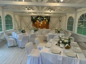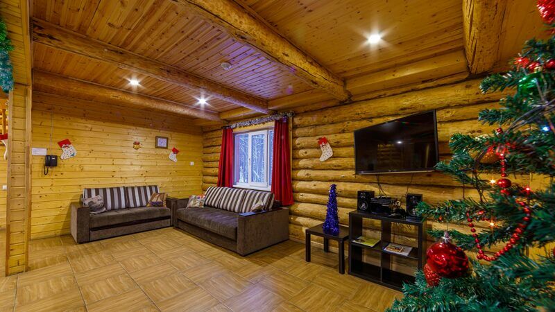 Зал в коттедже подходит для камерных мероприятий различного формата. В зале можно провести торжественные события с банкетной рассадкой до 20 человек или семинары. Оборудование включает ТВ-плазму, колонки, микрофон и Wi-Fi.