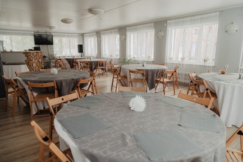 Для организации питания на территории имеется кафе. Для самостоятельного приготовления пищи – мангальные зоны. База отдыха принимает гостей круглогодично. Спектр оказываемых услуг и организации досуга приятно удивят, даже взыскательных клиентов.