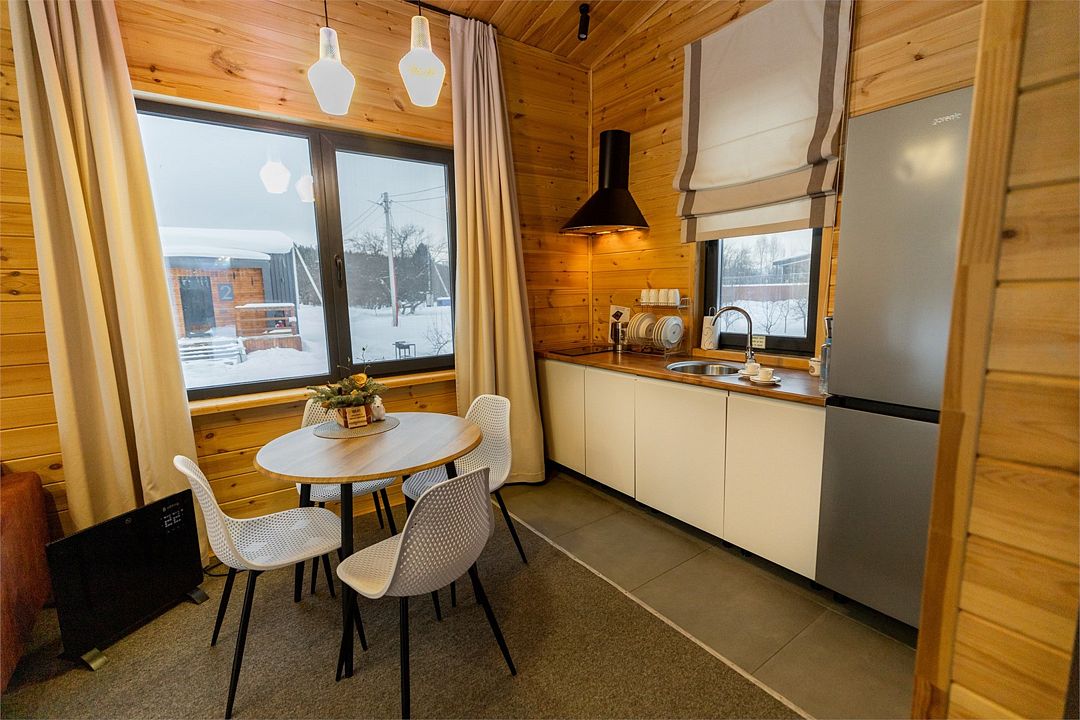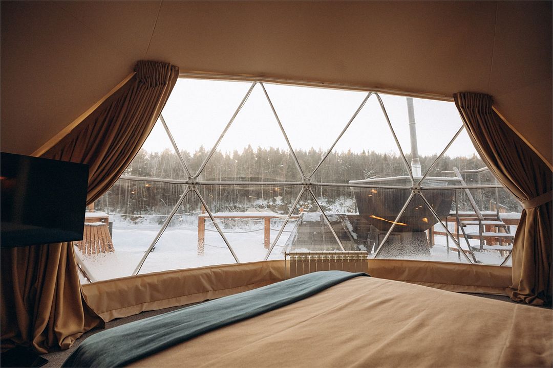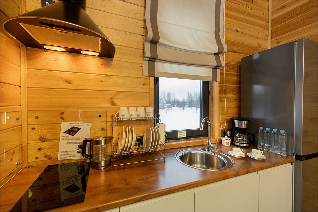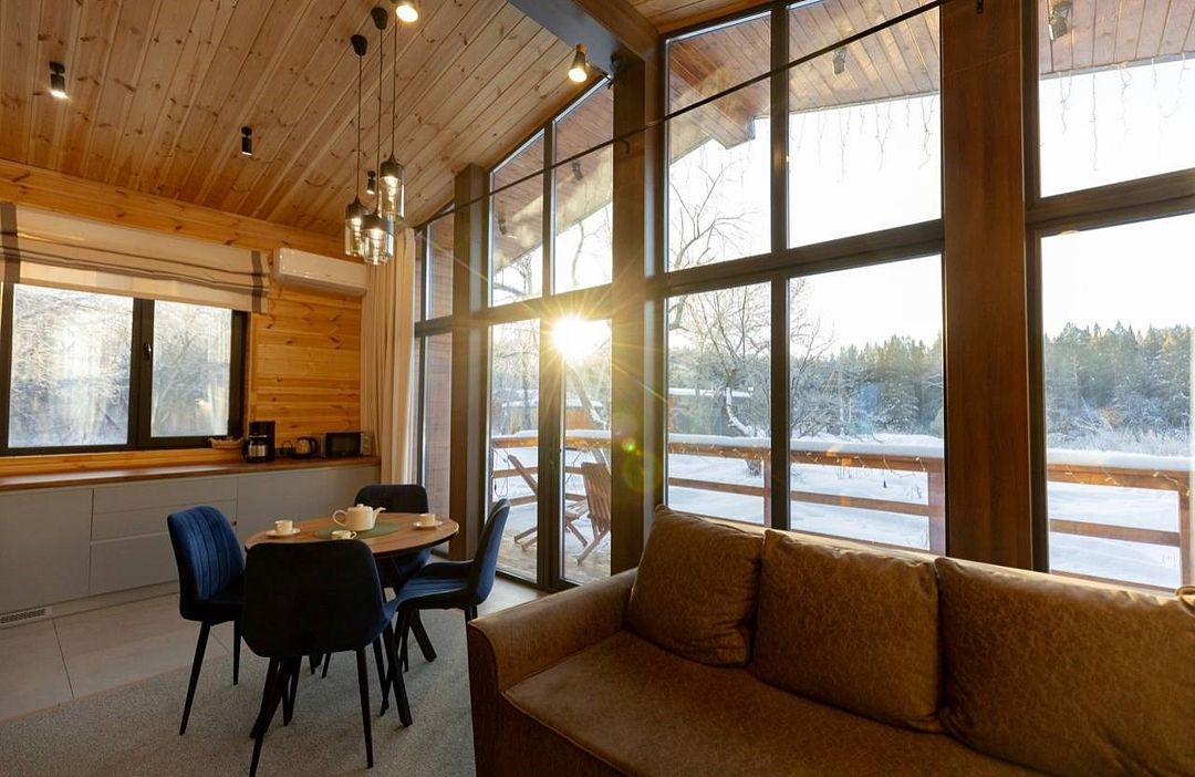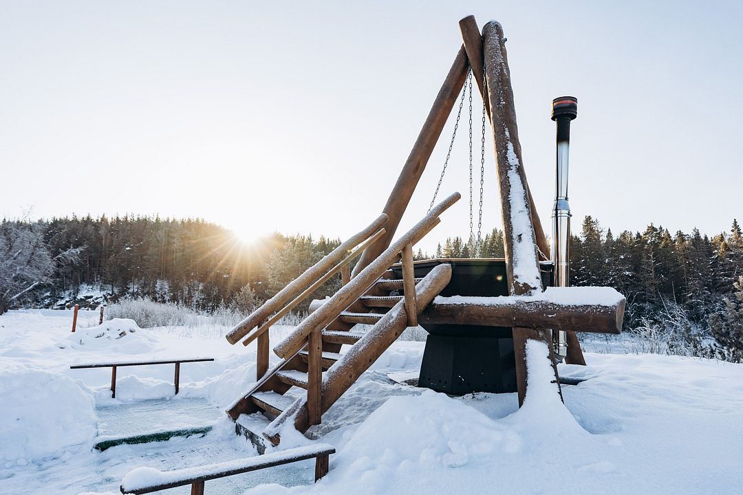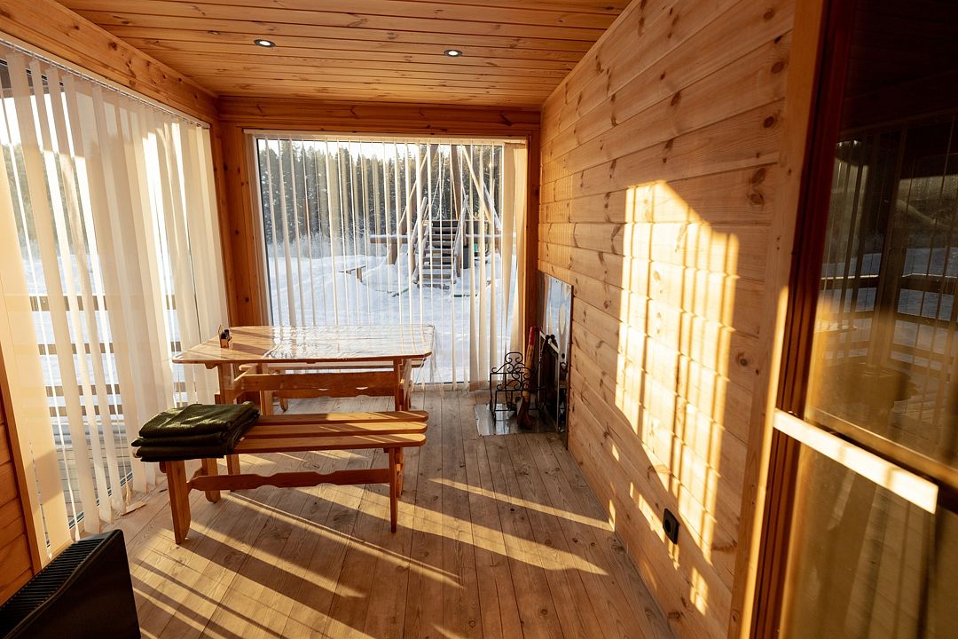 После освежающего купания в бассейне с панорамными окнами гости могут насладиться атмосферой можжевеловой сауны. Здесь, вдыхая свежий аромат хвои, вы сможете снять усталость и восстановить силы.