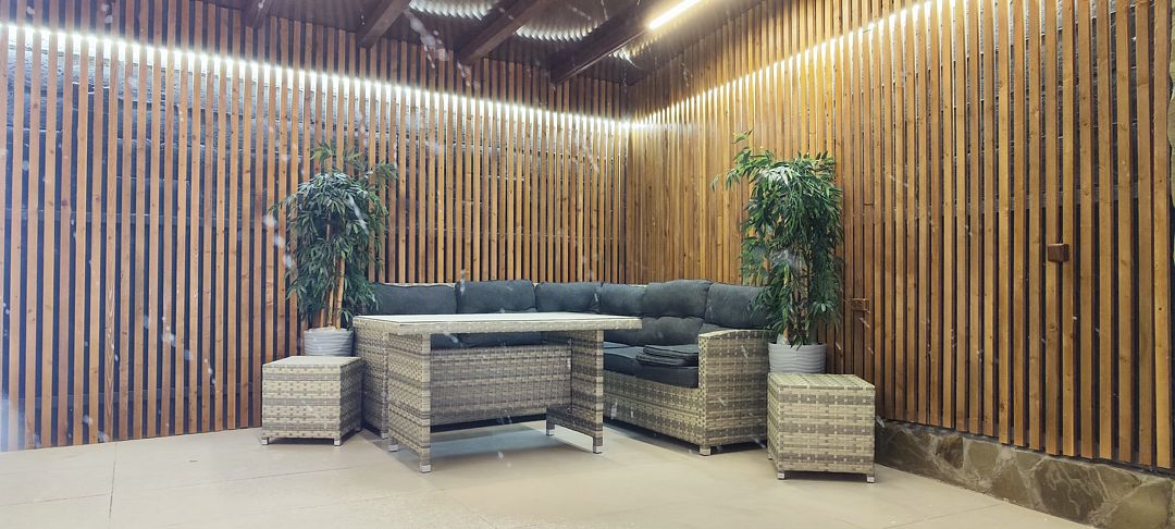 В каждом доме оборудована кухня, чтобы гости имели возможность самостоятельно приготовить любимые блюда. А на прилегающей территории обустроена мангальная зона.