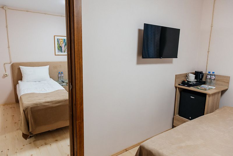 Двухместные номера расположены на втором этаже корпуса «Гостиница, по желанию кровать может быть как одна двуспальная, так и две односпальные. По запросу предоставляется детская кроватка. Все номера данной категории оснащены телевизорами, мини холодильниками и чайными станциями для удобства гостей.