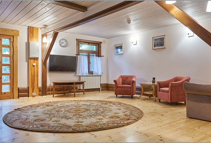Двухкомнатный номер Люкс расположен в корпусе гостиницы под названием "Трактир". Номер подойдёт для комфортного размещения семьи. Мягкая мебель в гостиной может быть использована в качестве дополнительного размещения. Для комфорта гостей в номере имеется мини холодильник и чайная станция.