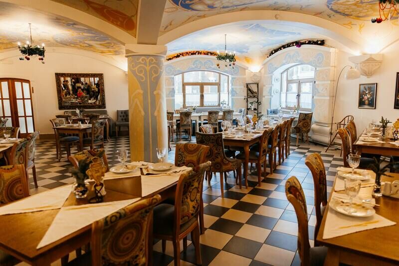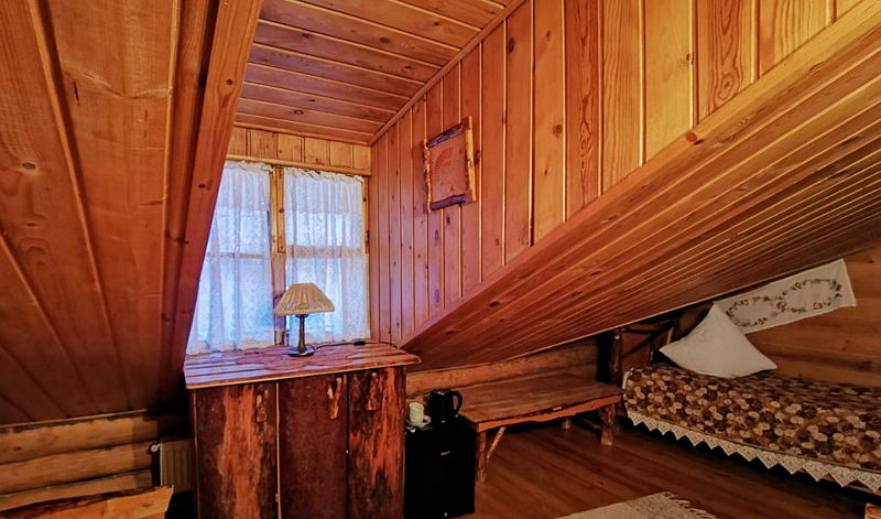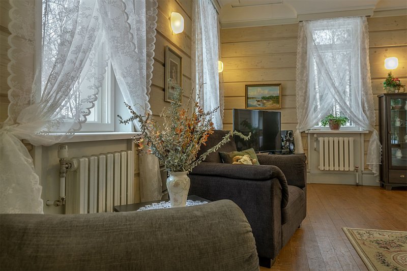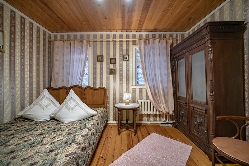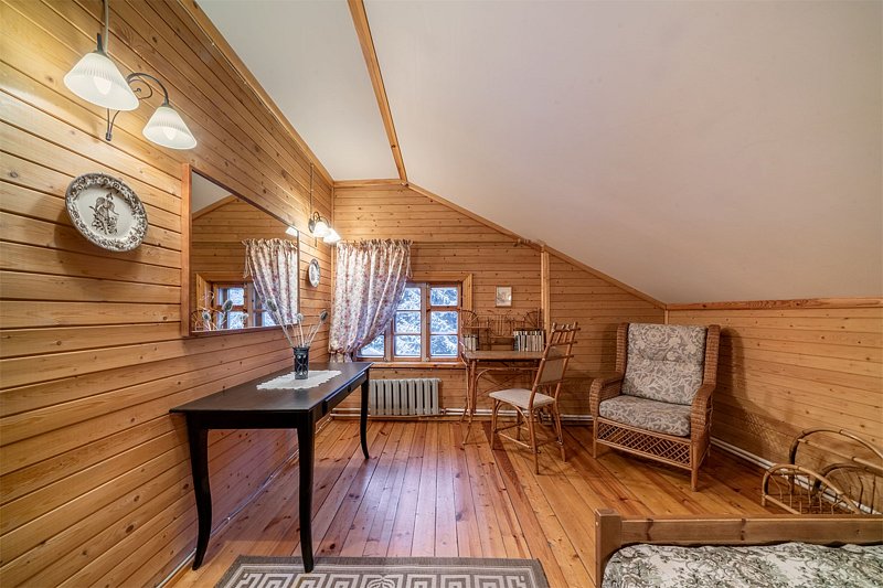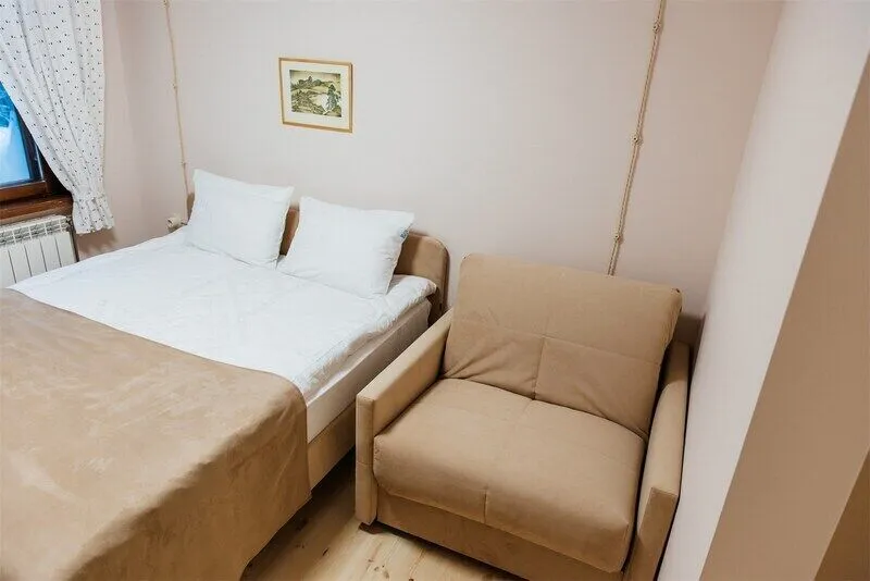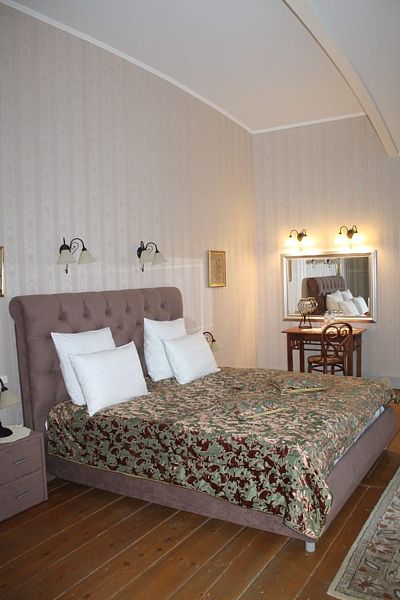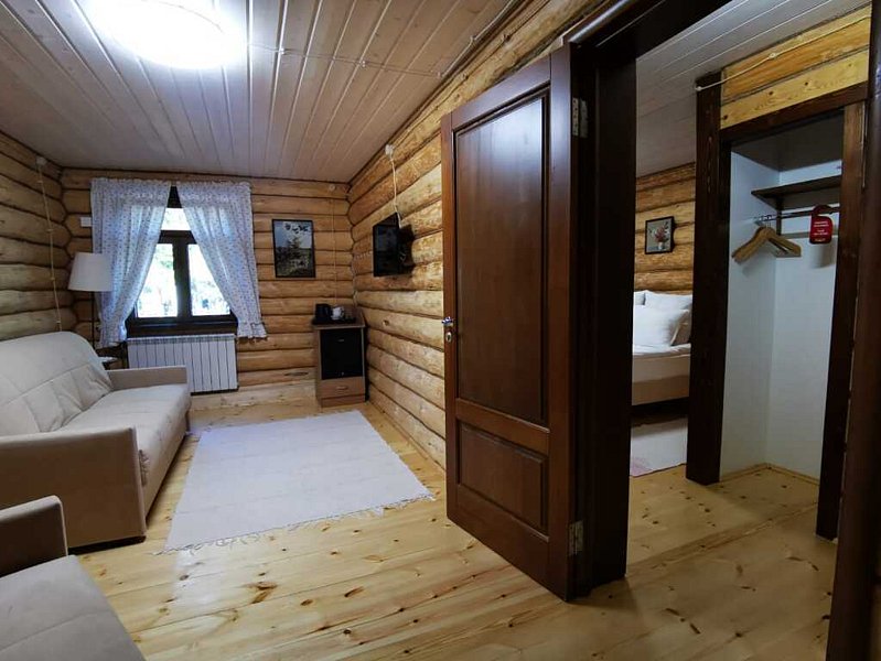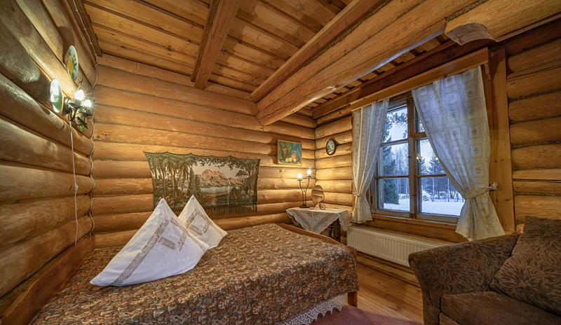 Двухкомнатный номер Люкс расположен в корпусе гостиницы под названием «Трактир». Номер подойдёт для комфортного размещения семьи. Мягкая мебель в гостиной может быть использована в качестве дополнительного размещения.