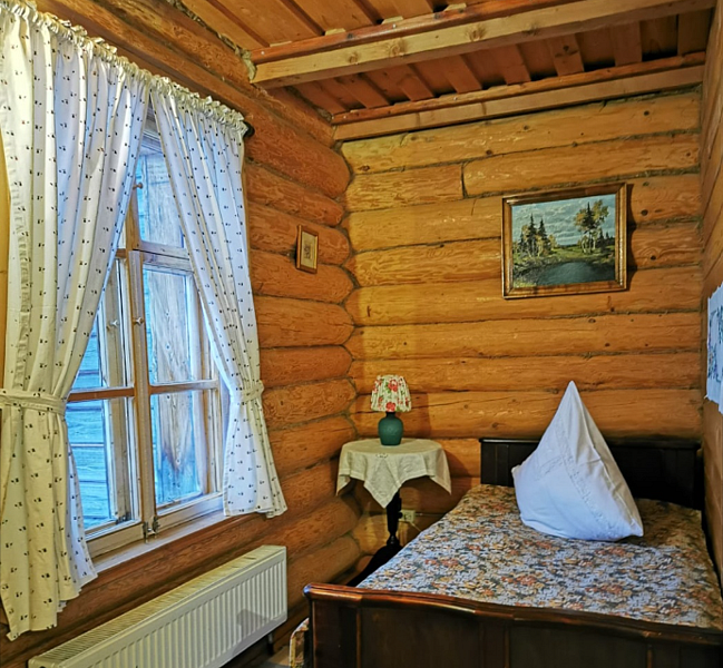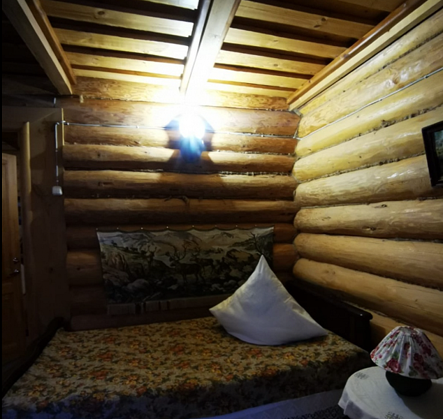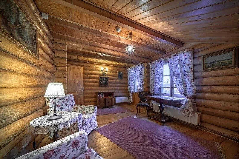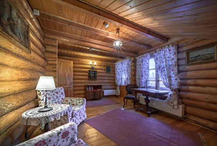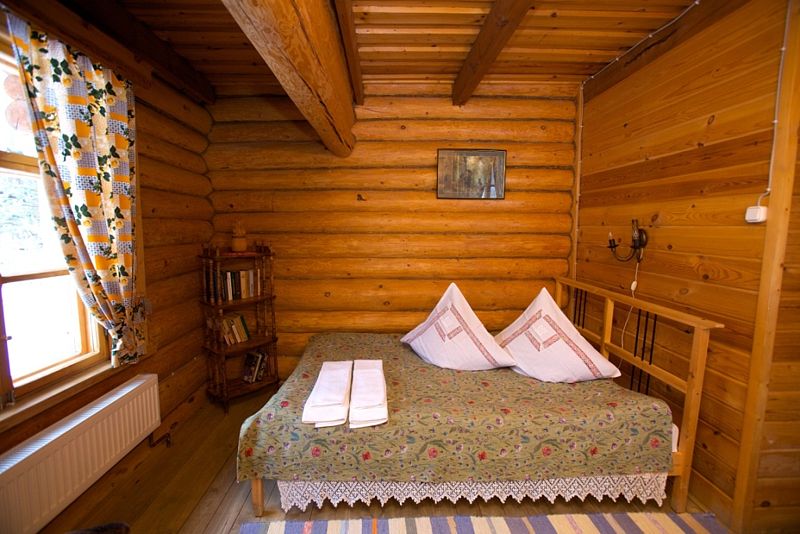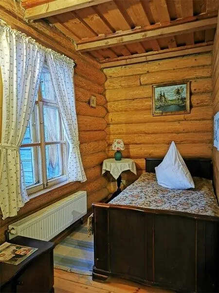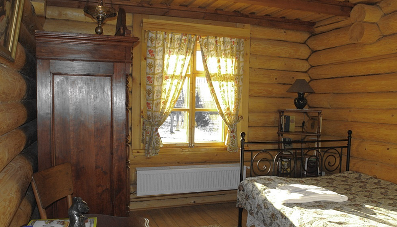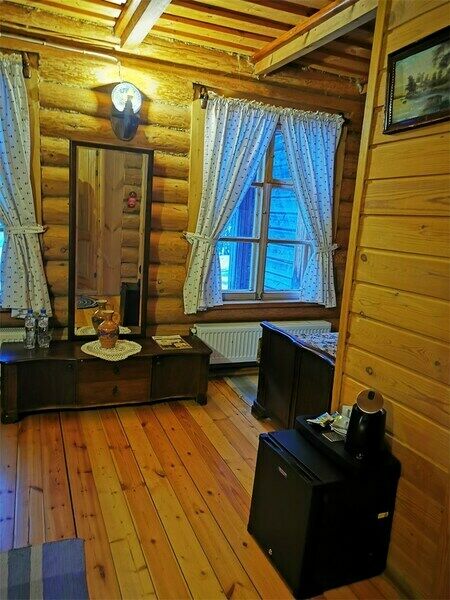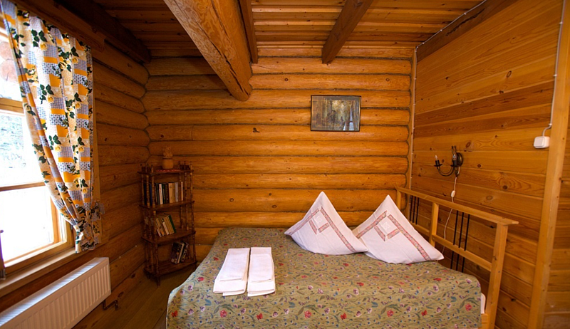 В номерах предусмотрена необходимая мебель для отдыха, есть электрический чайник, мини-холодильник и собственный санузел с душем и туалетными принадлежностями. В домах дополнительно оборудованы уютные гостиные с камином и телевизором. Интерьер в избах выполнен согласно настоящему крестьянскому быту. В усадьбе обустроен причал к реке, есть собственная бильярдная.