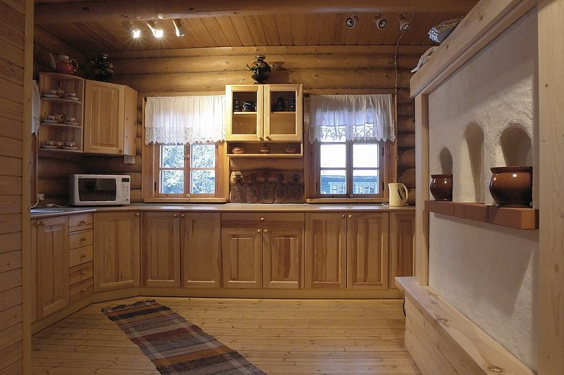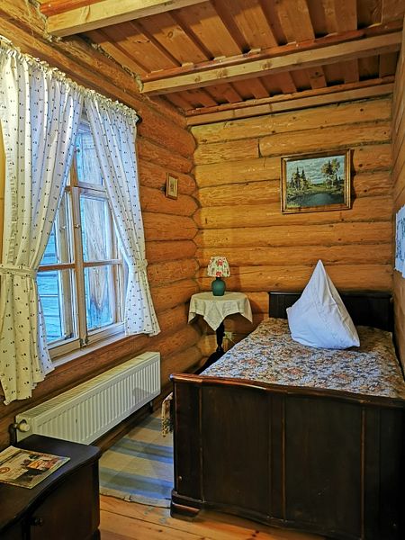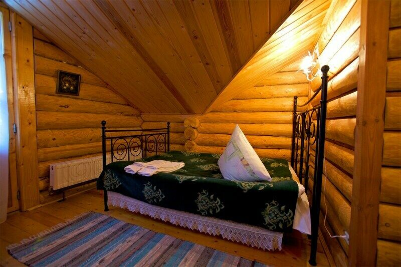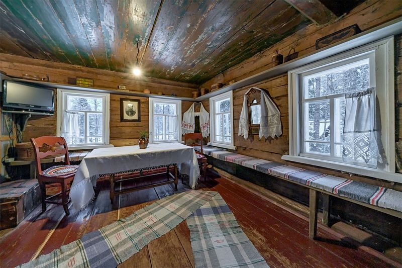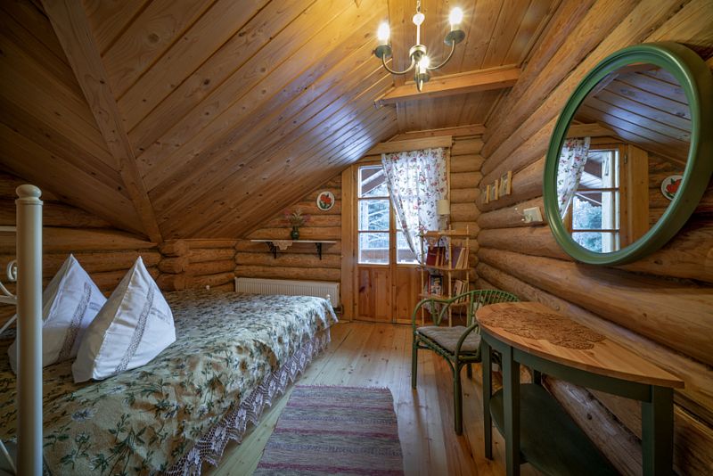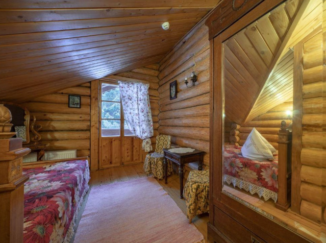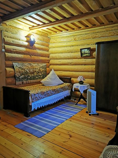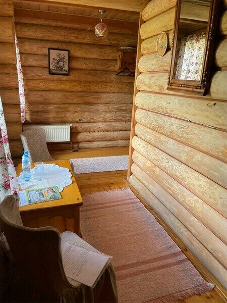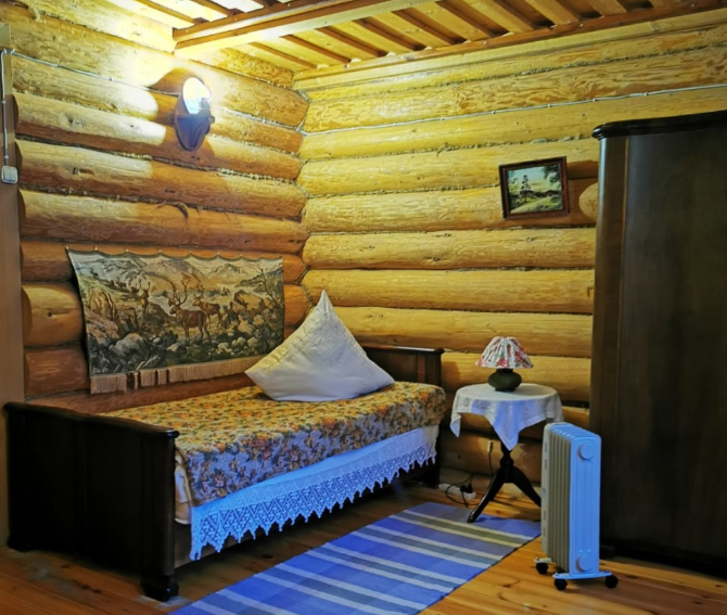 В номерах предусмотрена необходимая мебель для отдыха, есть электрический чайник, мини-холодильник и собственный санузел с душем и туалетными принадлежностями. В домах дополнительно оборудованы уютные гостиные с камином и телевизором. Интерьер в избах выполнен согласно настоящему крестьянскому быту. В усадьбе обустроен причал к реке, есть собственная бильярдная.