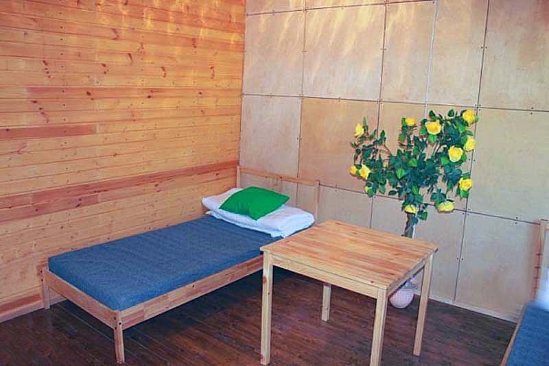 На территории турбазы располагаются 7 комфортабельных домиков. Уютный деревянный домик с электричеством, водопроводом и санузлом. Около домиков расположены беседки или столы под тентом. В домике: 2 кровати, холодильник, электроплитка, душевая кабина, санузел. Есть домики с телевизором и кондиционером. В качестве доп. места может быть раскладушка или матрас.