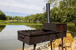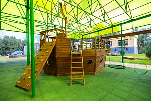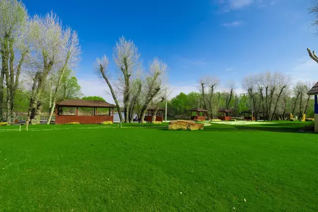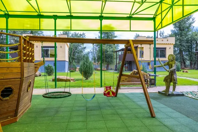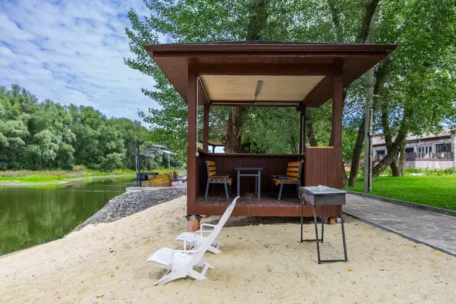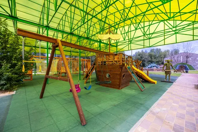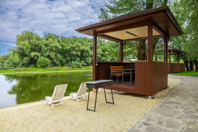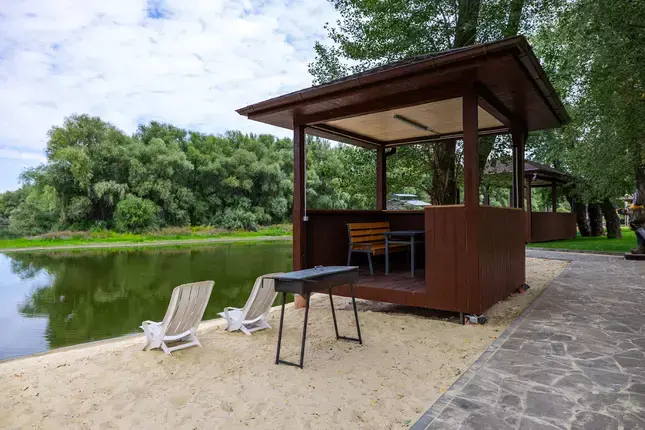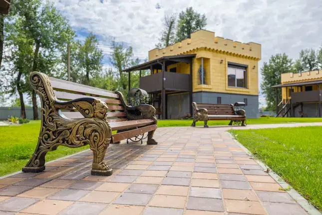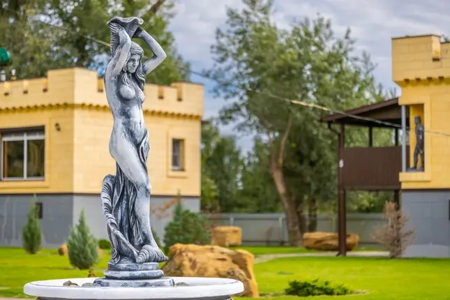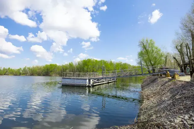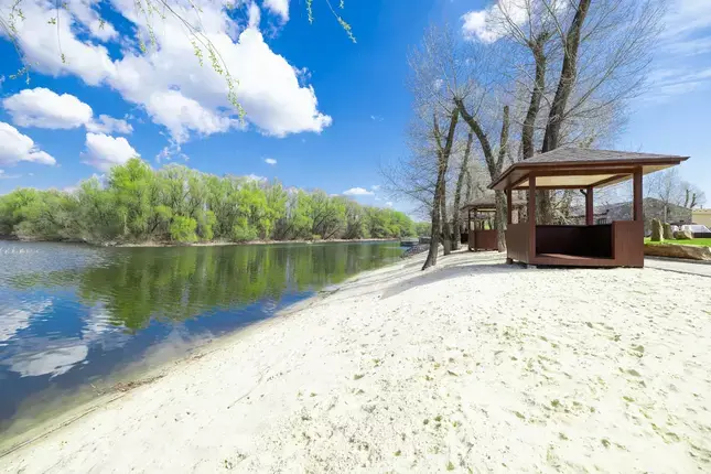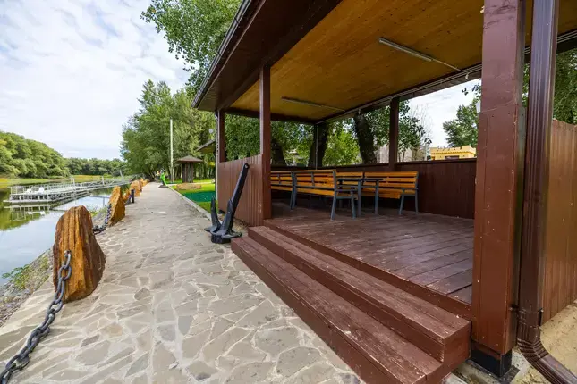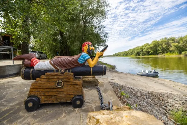 Вас ждут удивительные авторские скульптуры: драконы, рыцари, пираты и тематические зоны, а также крытые детские площадки, уютные беседки на берегу реки, качели, пирсы и большая мангальная зона.