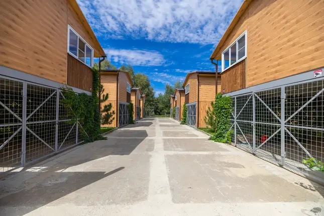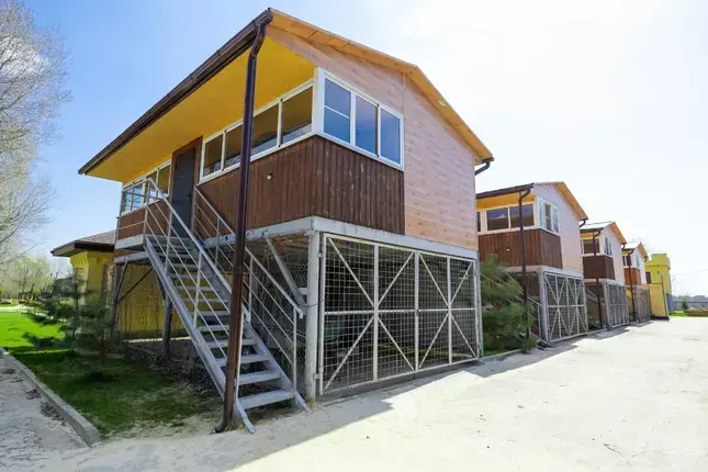 Всего 8 экологичных 2х этажных домиков с удобствами для 4 человек.