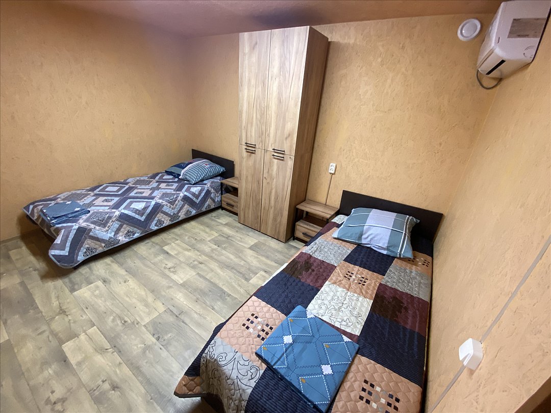 Вторая спальня с двумя односпальными кроватями, шкафом, тумбами и сейфом.