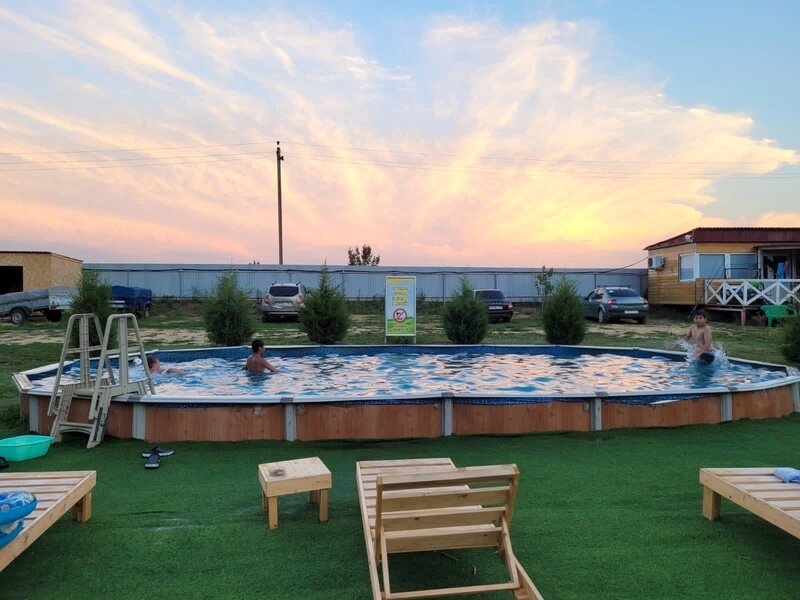 Для развлечений на свежем воздухе на территории базы установлен просторный плавательный бассейн. Рядом расположена детская площадка.