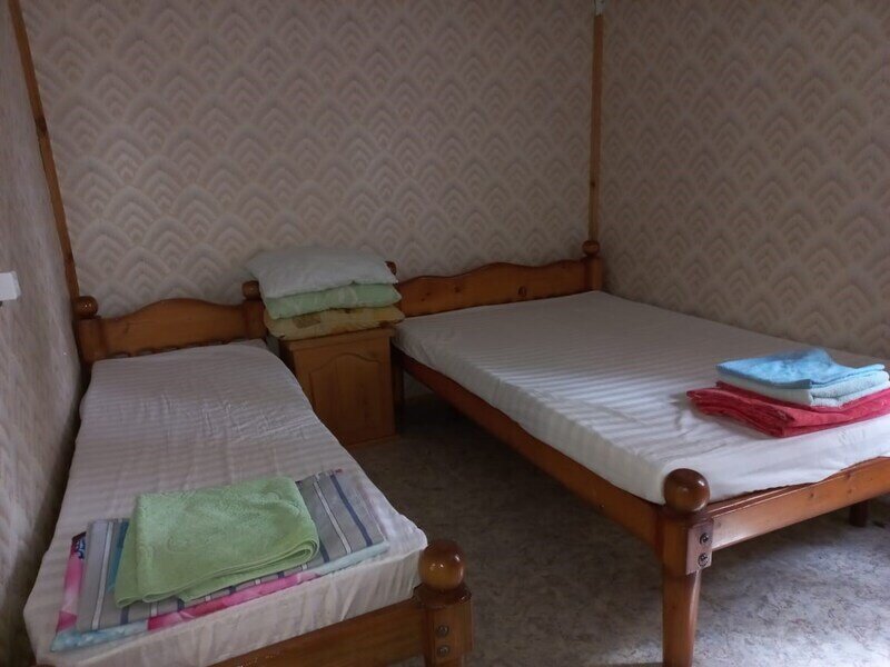 В доме стоит 2 односпальные кровати, которые можно сдвинуть в двуспальную, так и разместиться отдельно. Удобно как паре, так и для друзей.