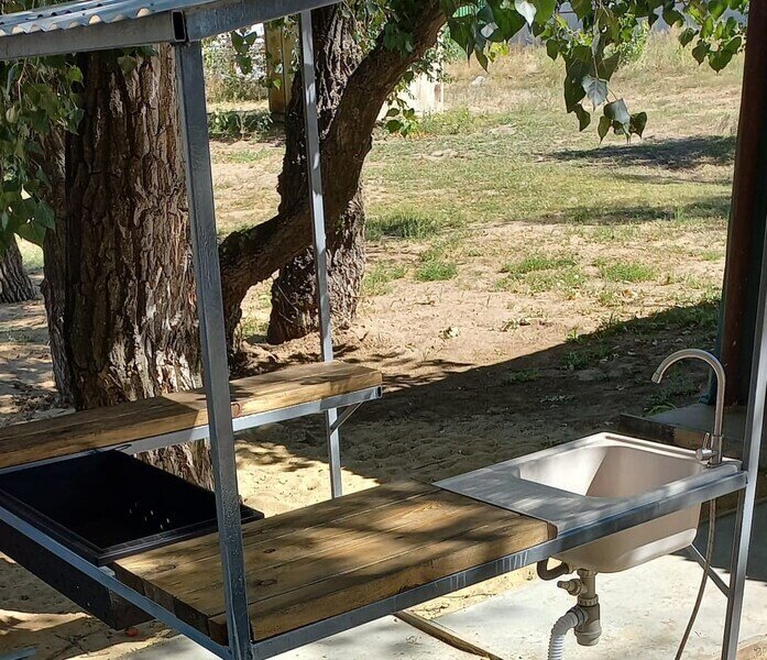 Садовая тачка рубленных дров уже будет ждать вас в мангальной зоне, чтоб у вас получились вкусный шашлык и ароматная уха.
