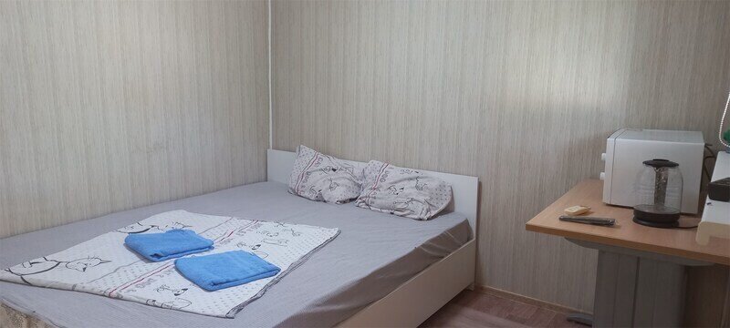 В номере сплит-система, холодильник, телевизор, чайник, микроволновая печь. Душ и туалет на улице в шаговой доступности.