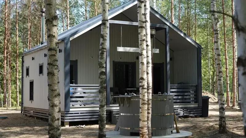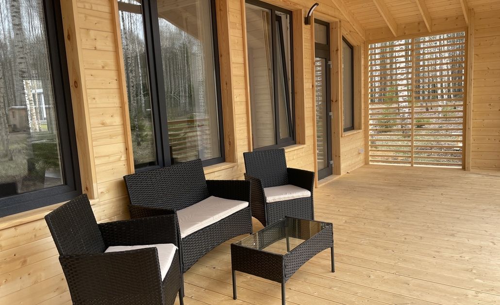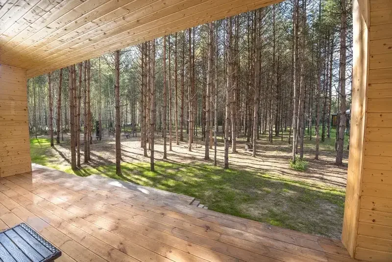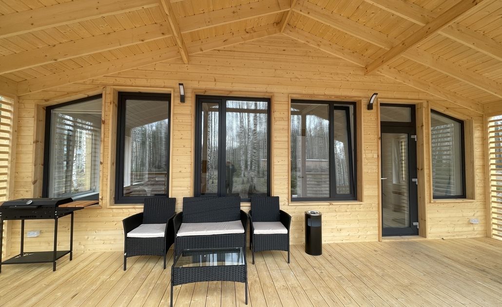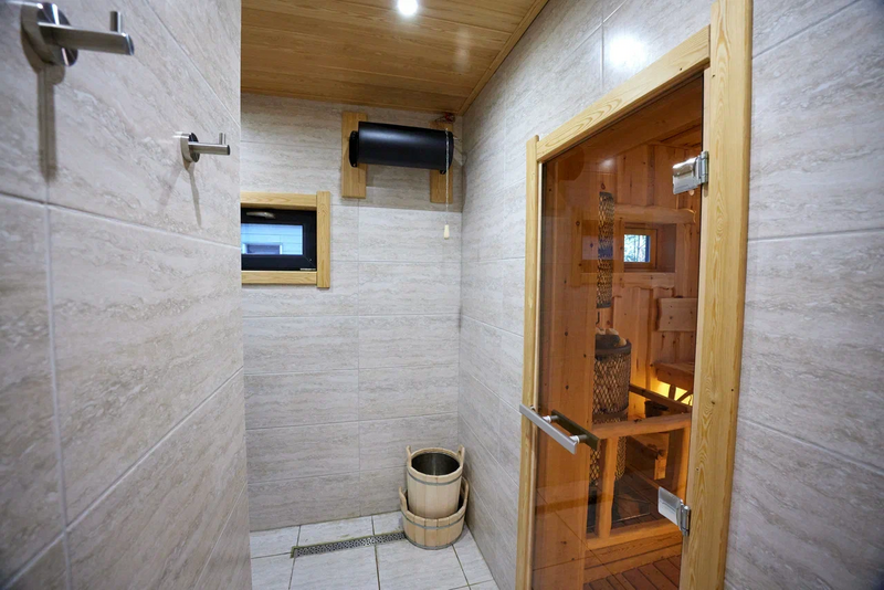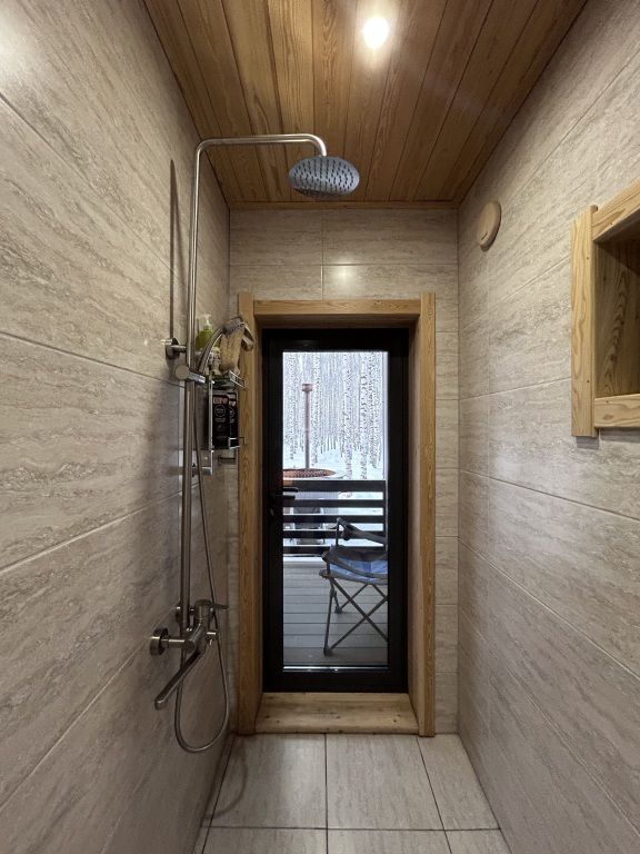 Баня с просторной верандой, гостиной санузлом и парилкой из кедра, душевой и вторым выходом в охлажденную купель, бронирование от трех человек.