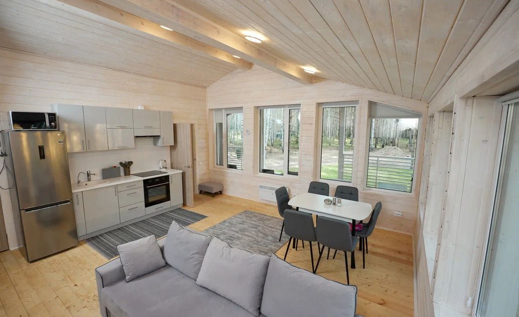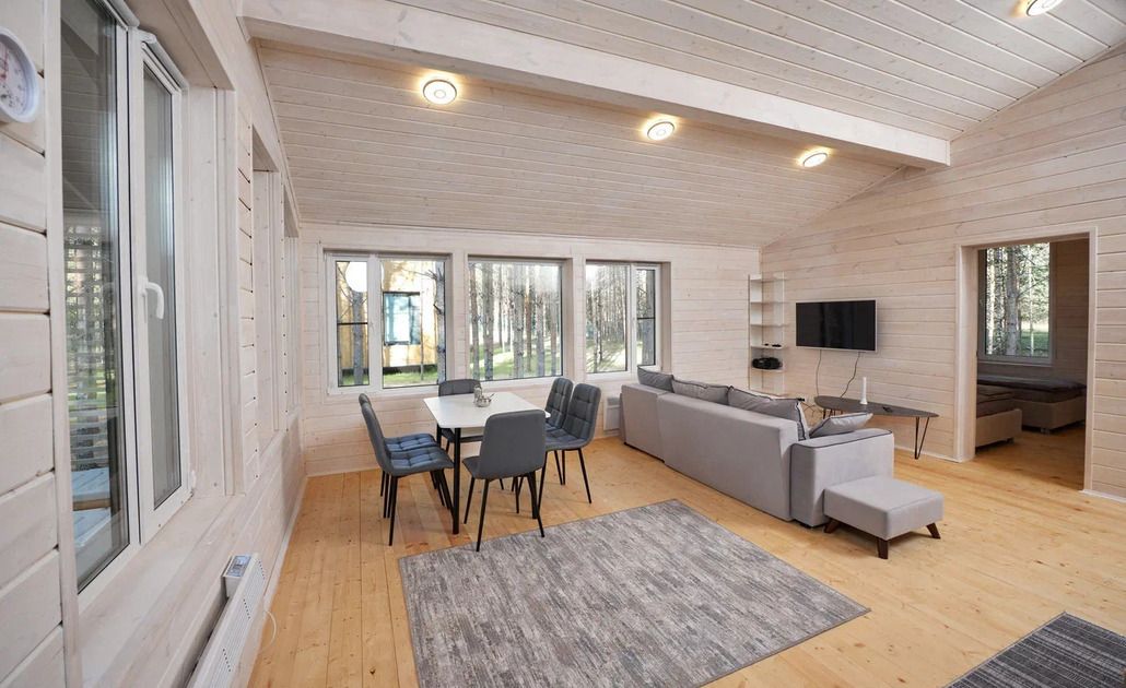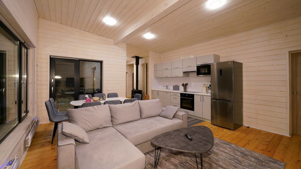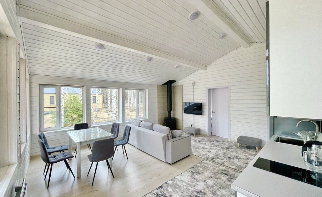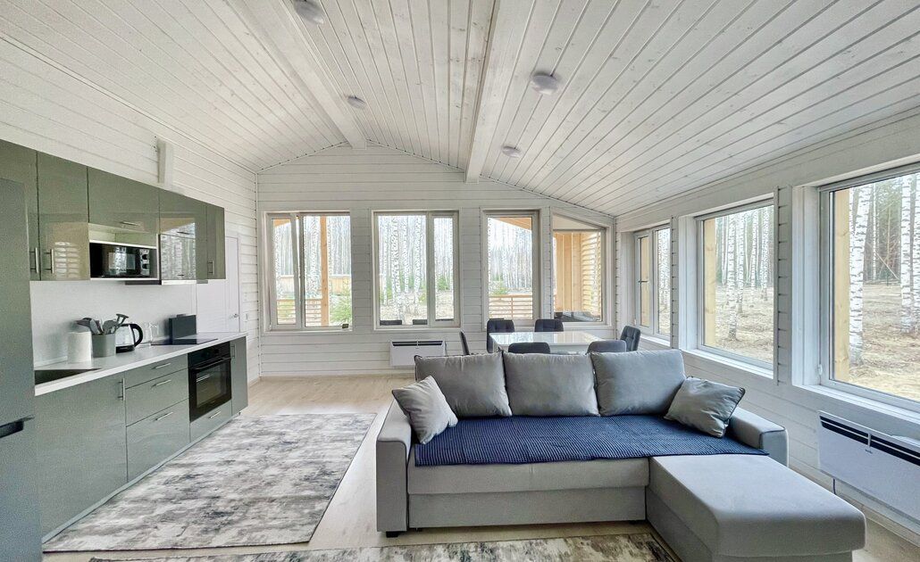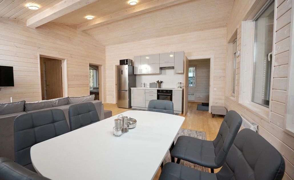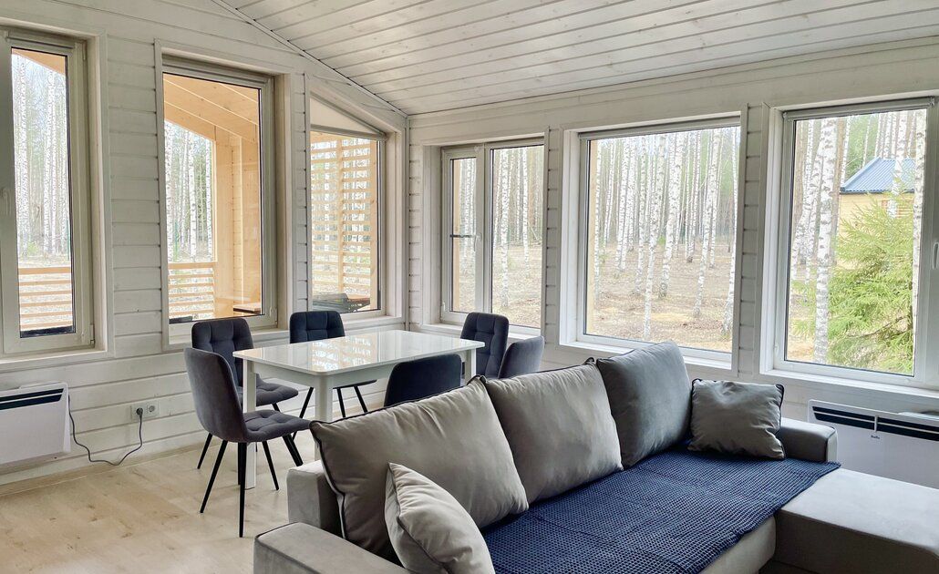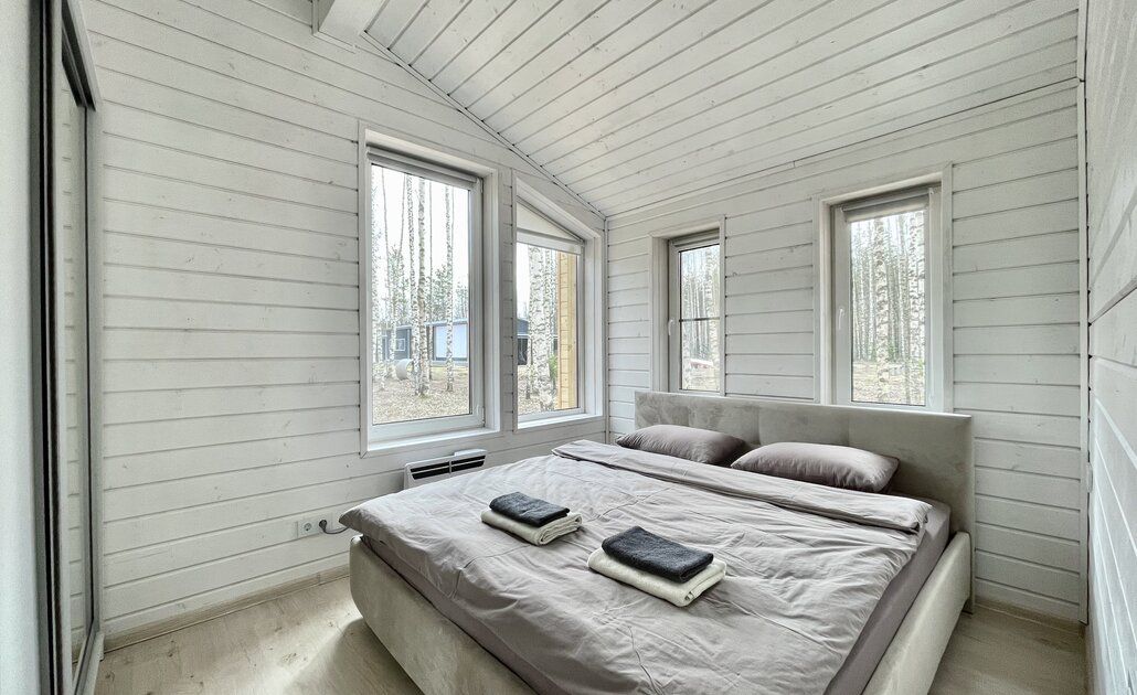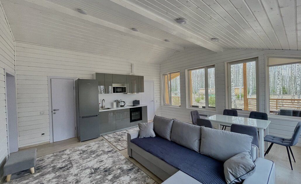 Современный коттедж с 3 спальнями, 2 санузлами и большой видовой террасой. Коттедж полностью меблирован, укомплектован текстилем и постельными и банными принадлежностями, оборудован бытовой техникой.