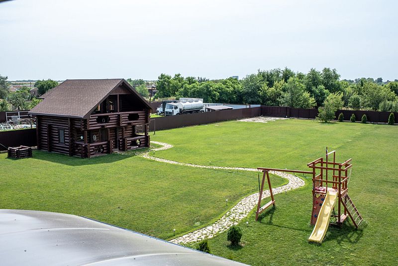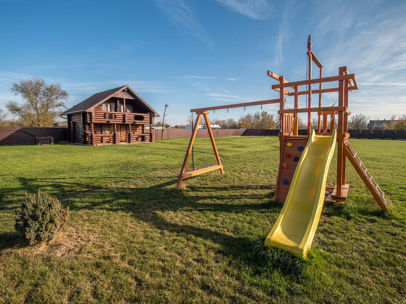 На базе отдыха дети смогут наслаждаться беззаботным временем на специально оборудованной площадке, которая включает в себя мини-скалодром, захватывающую горку, качели и игровую сетку. Обустроенная в окружении зелени, площадка позволяет детям играть и развивать свои физические навыки на свежем воздухе.