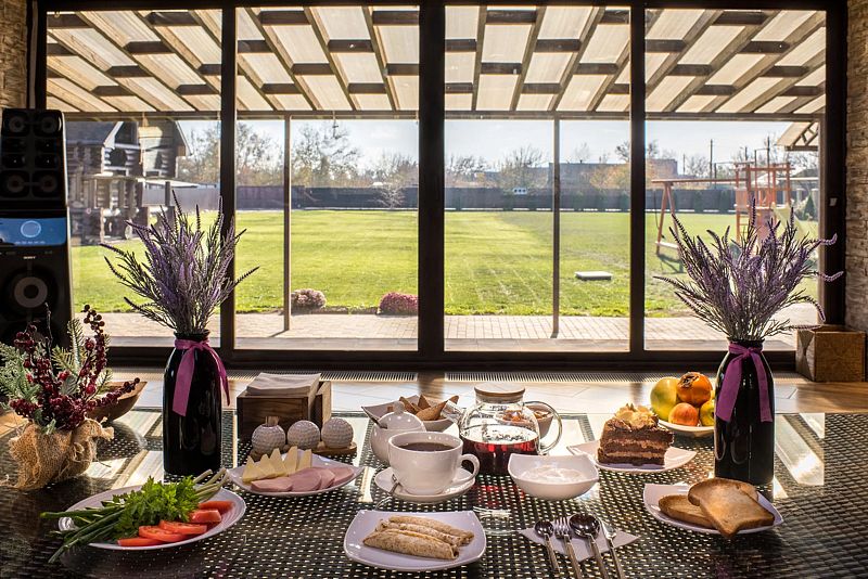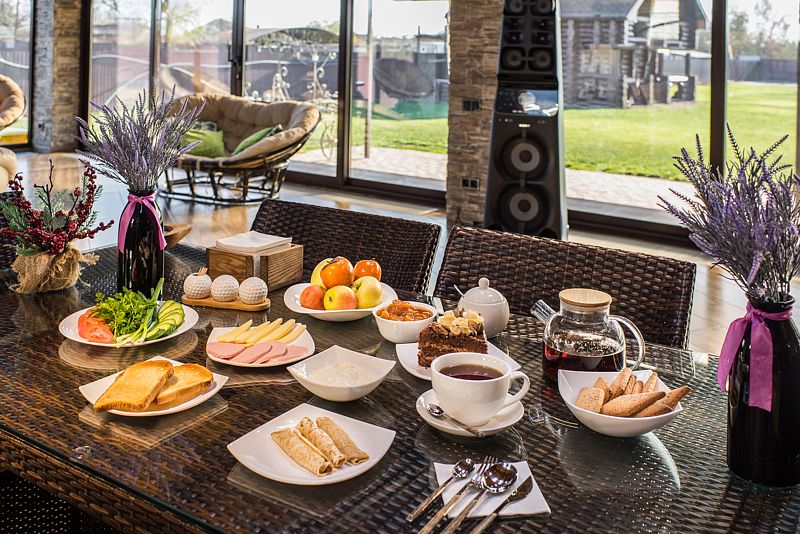 База отдыха «Царские хоромы» приглашает вас насладиться вкуснейшими блюдами, приготовленными из отборных фермерских продуктов. Завтрак начинается с ароматных молочных каш, блинчиков с мясом и творогом, а также со свежих овощных нарезок, мясной и сырной закусок.