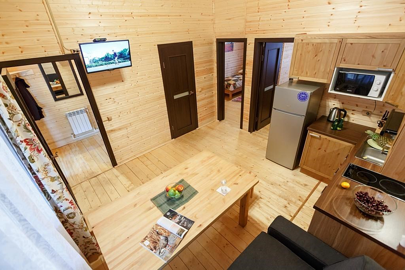 Короткий отпуск с друзьямиХорошее соотношение цена/качествоМы были в Афанасии целую неделю в конце мая и, хоть было холодно на улице, внутри домика было очень тепло и комфортно. Горячей воды также было достаточно на 4 человек (75 литров в баке). Оснащение домиков неплохое, но не идеальное: на кухне в каждом домике нет либо ножа либо штопора либо сковородки ну или еще чего-нибудь. Из реальных минусов -очень скрипучий пол, что будет неудобно, если Вы отдыхаете с детьми. Также вечерами слышно, что происходит в соседнем домике. Розеток достаточно, в нашем домике правда было всего два работающих канала в телевизоре, но нам это не было важно.