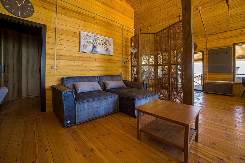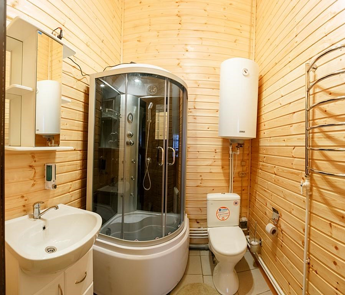 Комфортабельный коттедж на берегу Рыбинского водохранилища. В коттедже полностью оборудованная кухня-гостиная, две раздельные спальни на 4 человека, в одной из спален кресло-кровать, санузел с душевой кабиной. В гостиной большой раскладывающийся диван. Терраса с видом на море и своя большая мангальная зона. Прекрасно подходит для компании 4-6 человек.