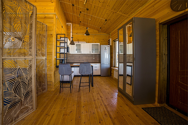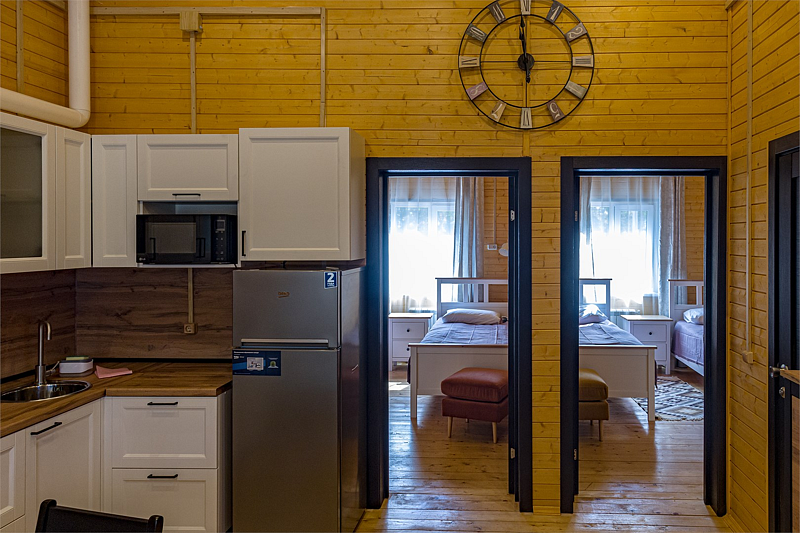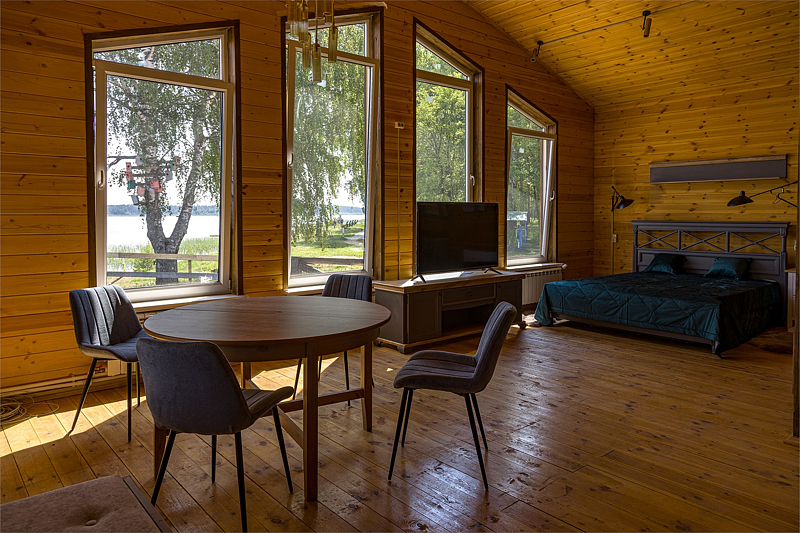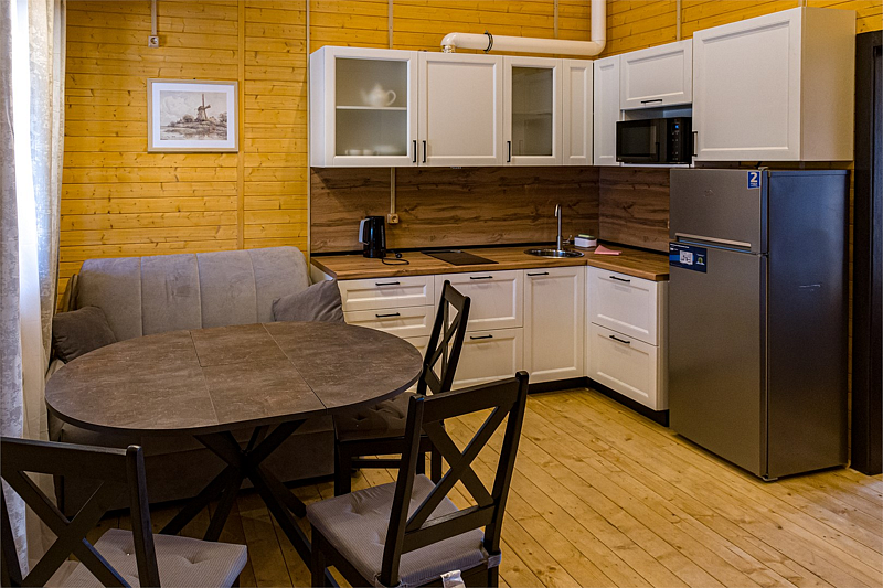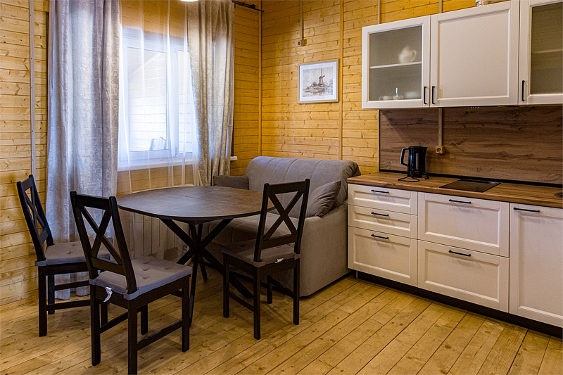 Комфортабельный коттедж на берегу Рыбинского водохранилища. В коттедже полностью оборудованная кухня-гостиная, две раздельные спальни на 4 человека, санузел с душевой кабиной. Возможность размещения дополнительного гостя на раскладном диване в гостиной. Свои веранда и мангальная зона. Прекрасно подходит для компании 4-5 человек.