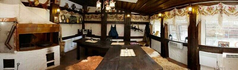 А ещё тут есть блюда из дичи (кабан, лось) и предлагаются на заказ блюда из русской печи. Сама печь - заслуживает отдельного описания, это просто надо увидеть. Заказ делается за сутки в меню порядка десяти блюд, в том числе: гусь, фаршированная щука, жаркое из лося и кабана.