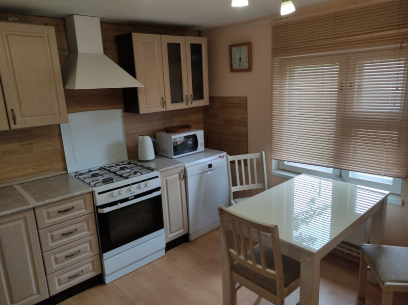 Кухня: Кухонный гарнитур, холодильник, морозильная камера, газовая плита, обеденный стол, эл. чайник, микроволновая печь, посуда для приготовления пищи. Питьевая вода отличного качества из крана.