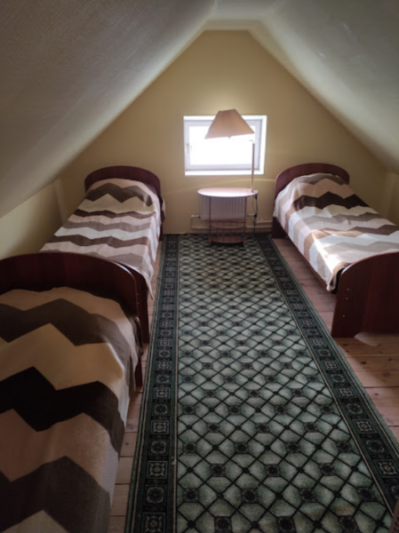 Две односпальные кровати, раскладной диван, обеденный стол, кухня с газовой плитой, холодильник, необходимая кухонная посуда, умывальник с холодной питьевой и горячей водой, душевая кабина, электрический обогреватели, шкаф для одежды, два мягких кресла, телевизор с цифровой приставкой, WiFi. Предоставляется постельное белье и полотенце.