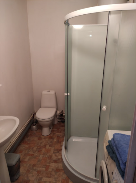 Туалет: Душевая кабина, умывальник, унитаз, стиральная машина.