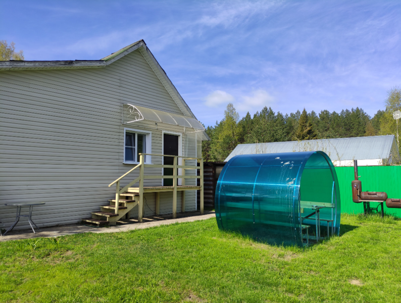 Душевая кабина расположена в доме, туалет — во дворе.