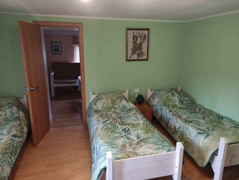 Три односпальные кровати, софа на кухне, тумбочка, вешалки для одежды, спутниковое телевидение, центральное отопление. WiFi.