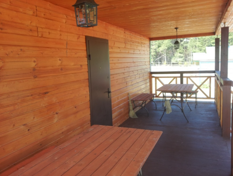 На улице установлен стол с холодной питьевой водой, отдельно стоящий туалет с унитазом и душем. (20 м)