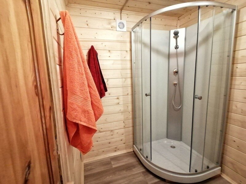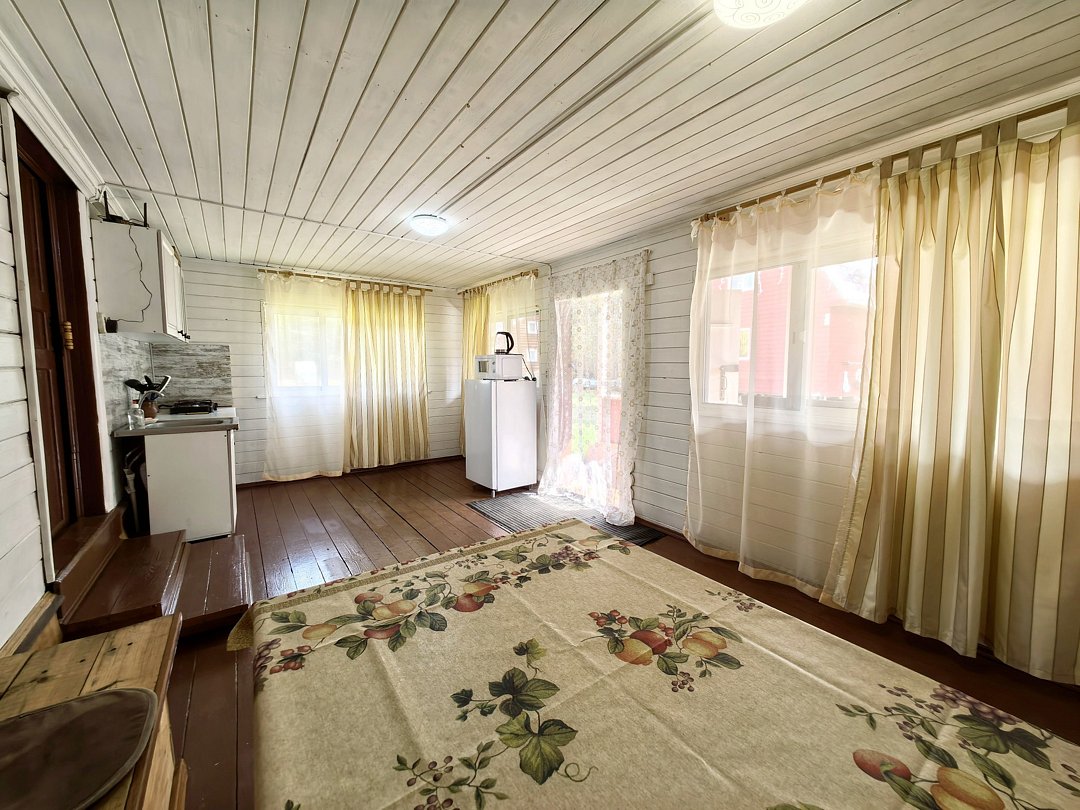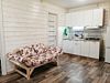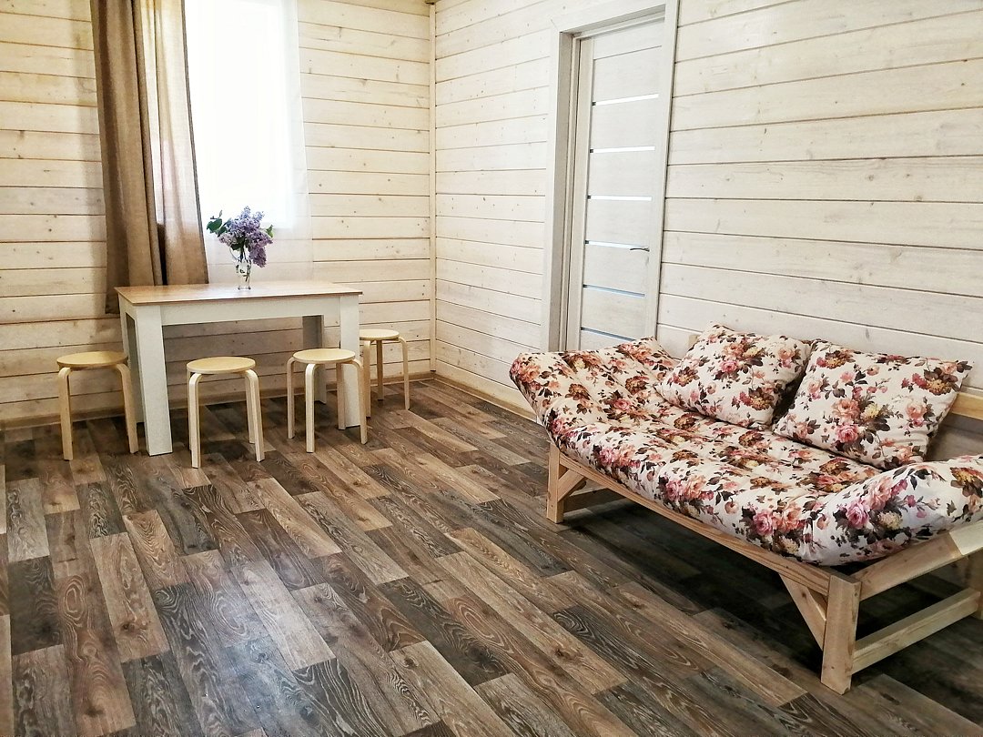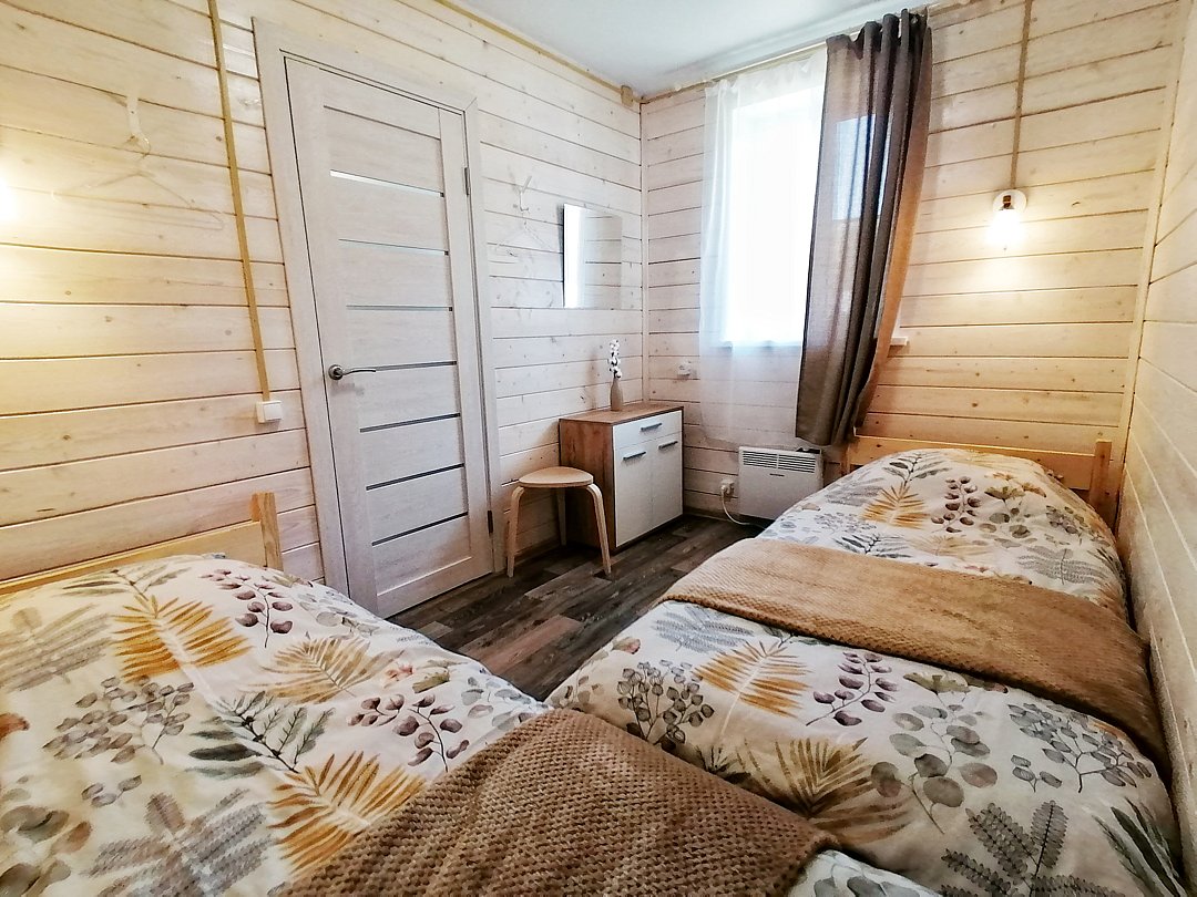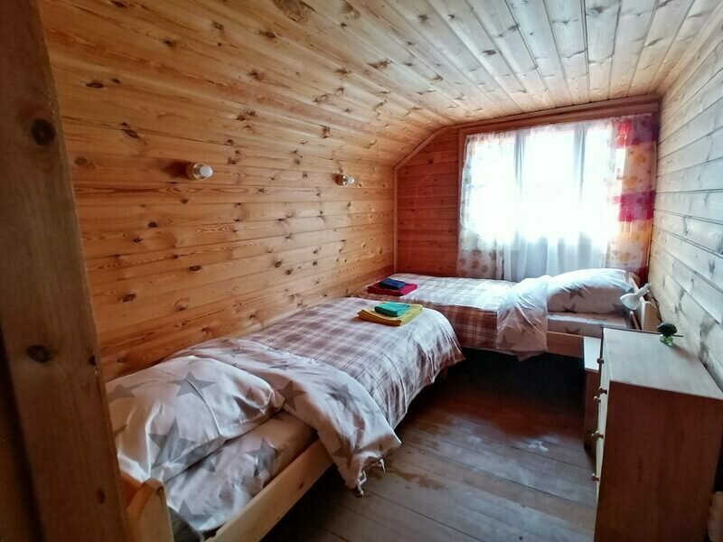 Летний дом на 4 человека с двумя спальнями, кухней-гостиной и совмещённым санузлом. Часть дома с отдельным входом, спальни расположены на 2-ом этаже, кухня и санузел на первом.
