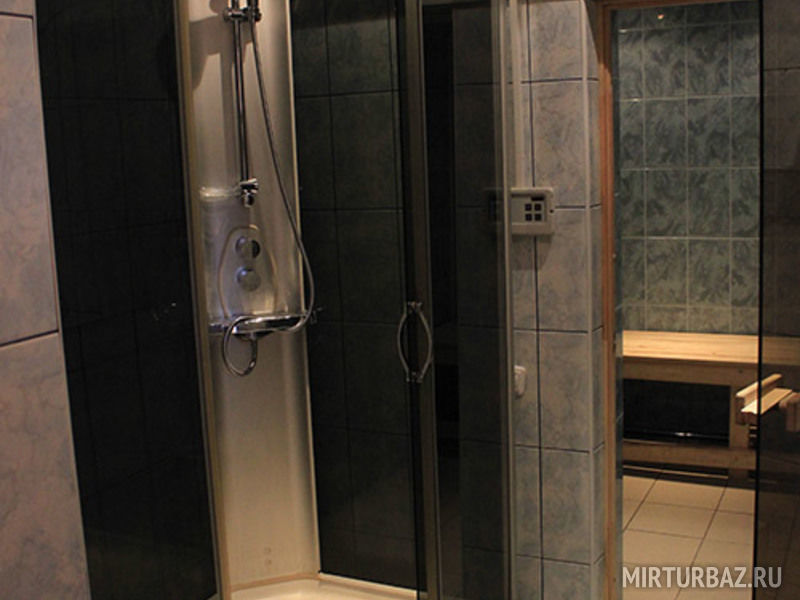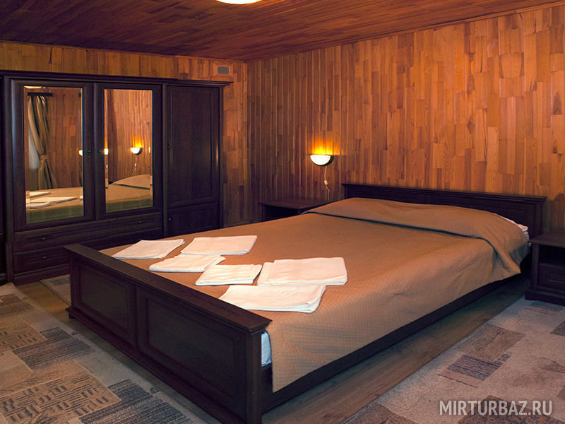 Однокомнатный номер с большой двуспальной кроватью и финской сауной в номере.