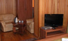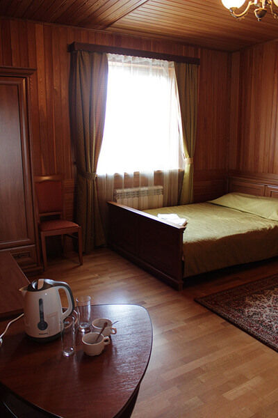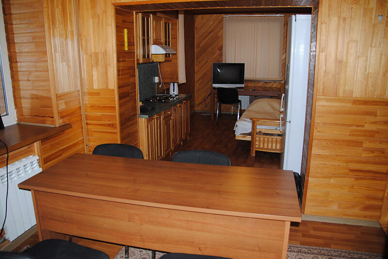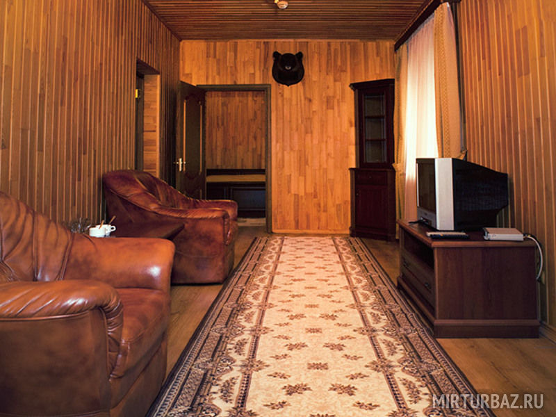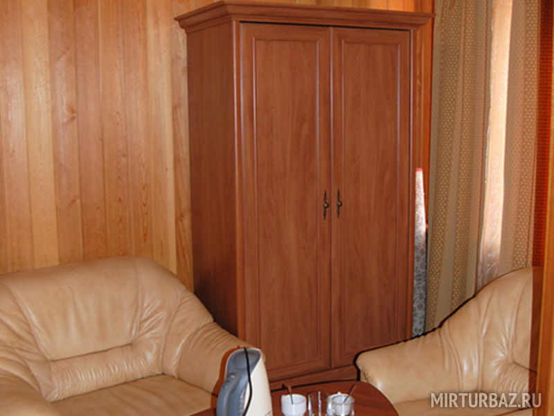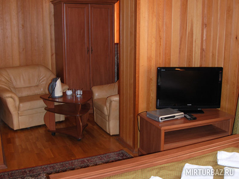 В номере есть спутниковое телевидение, чайник, чашки. В прихожей располагается небольшой холодильник.