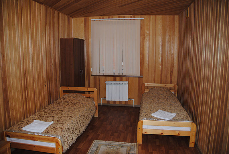 Двухместный номер эконом включает в себя: две кровати, две прикроватные тумбочки, шкаф, небольшой столик, стулья, чайник с чашками, телевизор.