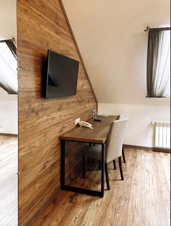 Номер уютно обставлен и оснащён необходимым, чтобы отдохнуть после долгого и насыщенного дня. Имеются телевизор и халат. Перечисленные услуги есть не во всех номерах.