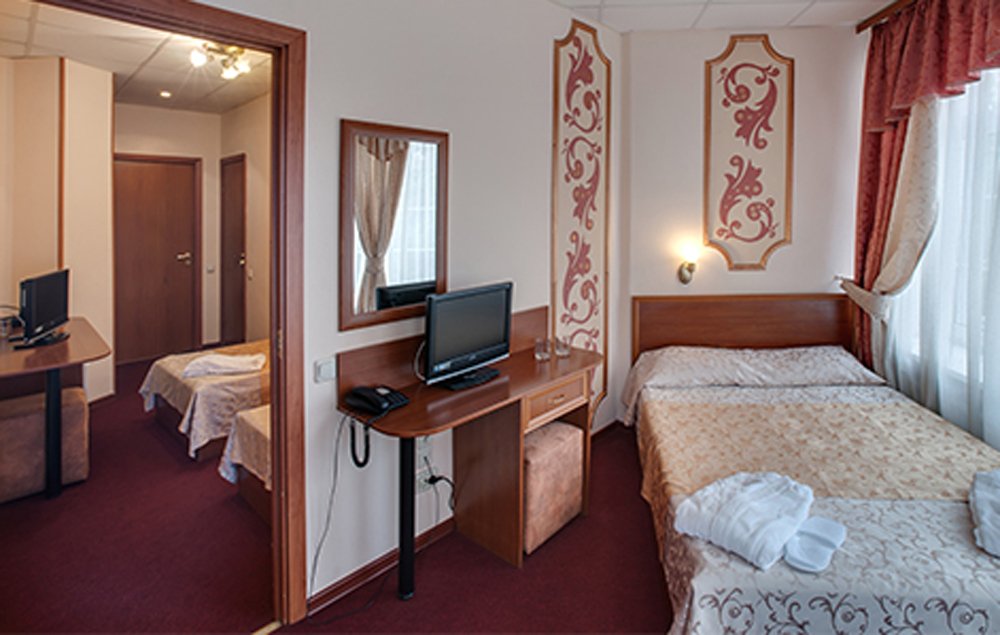 Площадь стандартного номера — 18.0 кв.м. В номере вас будут ждать душ, телевизор, халат и тапочки. Оснащение зависит от выбранной категории номера.