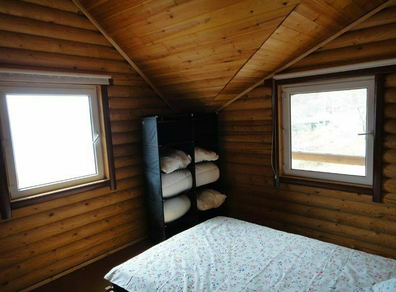 Номер в двухэтажном коттедже, построенном в старорусском стиле из экологически чистой древесины. Номер с отдельным входом по лестнице с перилами с видом на море, каждый номер запирается на ключ.