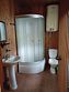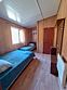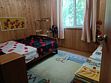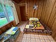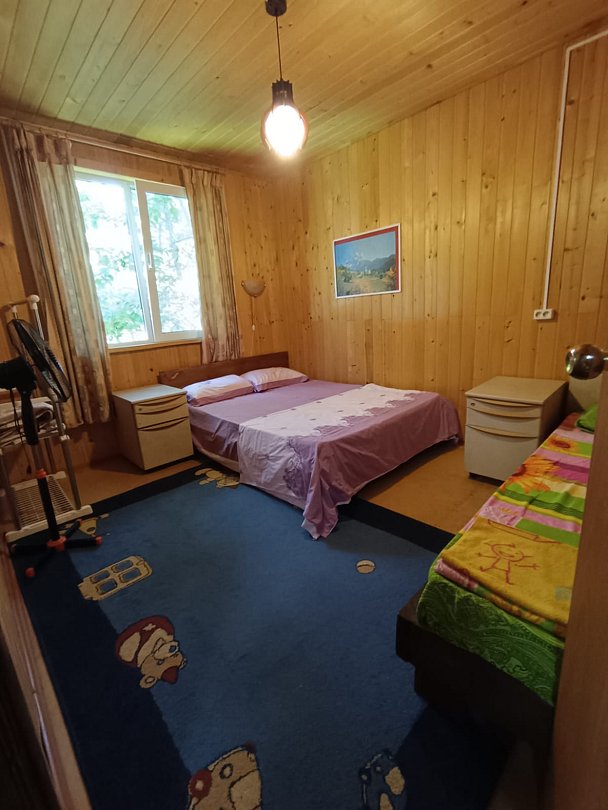 Стены обшиты евро-вагонкой. В номере одна двуспальная и одна двухъярусная кровати. Облегченный шкаф для одежды.