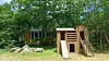 Для детей оборудована детская площадка с горкой, песочницей и качелями.