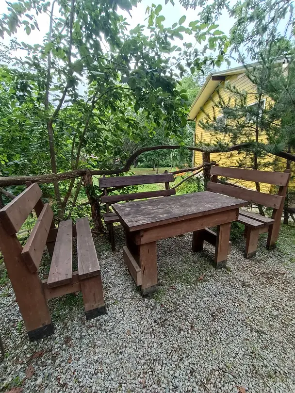 Среди деревьев — уютная костровая зона и гамак, где можно отдохнуть, наслаждаясь природой. Есть возможность отправиться по грибы, которые растут буквально через дорогу. Большие беседки до 12 человек с ночным светом создадут особую атмосферу для отдыха.