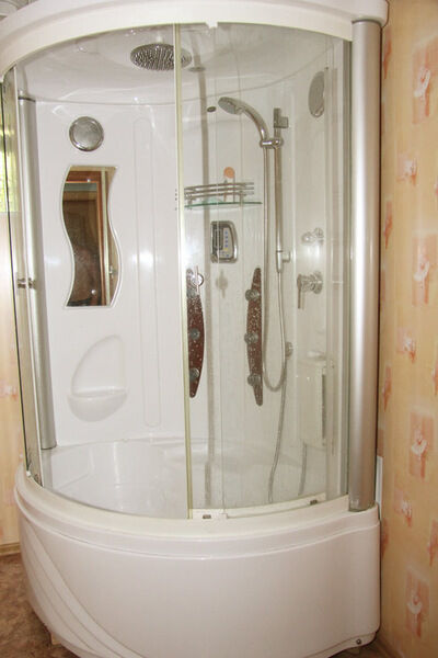 В спальных комнатах имеетсятелевизор, холодильник, комод для белья, кондиционер. Душевая кабина и туалет находятся между спальными комнатами и выходят на веранду. На полу в комнатах паркет, на веранде - линолеум. Полный набор постельного белья: 2 простыни, 2 наволочки, плед, по 3 полотенца каждому.