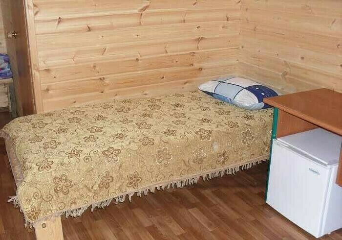 Отдельно стоящий двухэтажный деревянный корпус с комфортабельными номерами. Каждый номер оборудован санузлом, душевой кабиной, раковиной. В номере односпальная и двуспальная кровати, холодильник, тумбочки и стол.