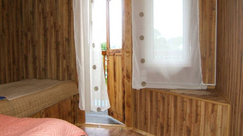 Гостей базы отдыха размещают в шестиместных домиках или в двухэтажной гостинице с 2-х, 3-х и 4-х местными номерами.